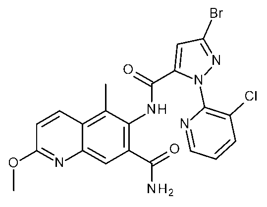 ジアミド系殺虫剤は昆虫のリアノジン受容体を標的としており、細胞内カルシウム貯蔵の枯渇を引き起こす(Ebbinghaus-Kintscher et al.2006;Sattelle,Cordova,and Cheek2008;Cordova et al.2006)。市販のジアミドは、フルベンジアミドを唯一の代表とするフタル酸ジアミドと、クロラントラニリプロール、シアントラニリプロール、シクロアニリプロール、及びテトラニリプロールを含むアントラニルジアミドの2つの分類に分けることができる。フタル酸ジアミド及びアントラニルジアミドの他の例は、シハロジアミド、フルクロルジニリプロール、及びテトラクロラントラニリプロールである。すべてのジアミドは同じ作用機序を共有しているためIRAC MoAグループ28に分類される。 Diamide insecticides target the ryanodine receptor in insects, causing depletion of intracellular calcium stores (Ebbinghaus-Kintscher et al. 2006; Sattelle, Cordova, and Cheek 2008; Cordova et al. 2006). Commercially available diamides can be divided into two classes: phthalic diamides, with flubendiamide as the sole representative, and anthranil diamides, which include chlorantraniliprole, cyantraniliprole, cycloaniliprole, and tetraniliprole. Other examples of phthalic and anthranil diamides are cyhalodiamide, fluchlordiniliprole, and tetrachlorantraniliprole. All diamides share the same mechanism of action and are therefore classified in IRAC MoA Group 28.