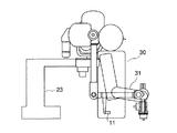 図3に示した肘センサはマイクロリニアスケールを利用したもので、リニアスケール本体12をマスターアームの第4リンク10に固定し、操縦者30の前腕31に巻いたバンド13にスケールの端を結びつけて、第4リンク10と操縦者の前腕31の距離を測るものである。両者間の距離が一定になるように調整することによりマスターアームを操縦者の腕に追従させることができる。
