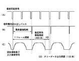 この後、図5(B)及び図4(C)に示す映像信号をディジタル信号処理部5を通してフレームインターライン変換部13に供給し、ここでこの1フレームあたり垂直有効走査線数480本とダミーデータ100本のノンインタレース方式映像信号を、1フィールドあたり垂直有効走査線数240本とダミーデータ50本のフレームインターライン画像となるようにフレームインターライン変換を行って、再び図5(C)に示す如く、奇数ラインの1フィールド分の映像信号とダミーデータからなる信号と、偶数ラインの1フィールド分の映像信号とダミーデータからなる信号とが1フィールド毎に交互に合成された映像信号をディジタル信号処理部5へ出力する。なお、図5(A)は垂直同期信号を示す。