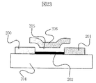 以下には、本発明の具体的な実施例による半導体素子及び半導体装置を説明する。図23は本実施例による素子の断面構造図を示す。SOI基板を用い、ソース(200)、ドレイン(201)、チャネル(202)は単結晶からなり、 SiO2膜(204)上にある。ソース(200)、ドレイン(201)は高不純物濃度n型である。チャネル(202)はソース(200)、ドレイン(201)領域よりも薄く、厚さ平均が4nmのp型となっている。制御電極(203)は、高不純物濃度n型の多結晶シリコンよりなる。チャネル(202)と制御電極(203)はSiO2膜からなるゲート絶縁膜(205)で絶縁されている。