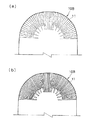 FIG. 2 is a one-side surface view (a) and a one-side back view (b) of an example of a paperboard blank.