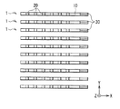 続いて、図6に示したように、例えばダイシングソーなどの装置やレーザ溶断などの手法等を使用して、複数のフリップチックLED素子20の配列領域ごと(すなわち複数のフリップチップLED素子20の列ごと)に前駆フレキシブルプリント配線基板10Zを切断することにより、上記した配列方向に対応する延在方向に沿って延在する複数の短冊状のフレキシブルプリント配線基板10を形成する。