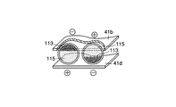 逆に電極フィルム41bが正極、電極フィルム41dが負極になった場合、正に帯電した白の粒子113が電極フィルム41d側に引かれ、黒の粒子114が電極フィルム41b側に引かれるので、電極フィルム41bの上方から観察すると、その部分が黒く見える。