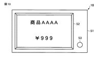 電子棚札装置18は、ラベル状をなす筐体51の正面側に、品名,価格等を表示するための表示部52と、前記携帯電話11とのインターフェイス部53とを設けている。また、駆動源としてのバッテリ54、棚札コントローラ17を介して棚札管理サーバ7とデータ通信を行う通信部(端末側サーバ用通信部)55、不揮発性の記憶部56、前記携帯電話11が有するものと同一規格の近距離無線部(端末側携帯用通信部)57及び各部を制御する制御部58を搭載している。