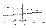 単一の「接続」は、通常、ここでは「状態オブジェクト」と呼ばれる、各ネットワーク層の状態からなることに注意されたい。しかし、ネットワークプロトコルの計算をオフロードすることは、接続オリエンテッドプロトコルに限られていない。IPSecなどの他のプロトコルは、接続オリエンテッドではないかもしれないが、それでも、状態オブジェクト、または状態オブジェクトのグループを含み、これらはオフロードすることができる。リモートDMA(RDMA)では、接続オフロードに必要なものにさらに状態オブジェクトを追加することができる。本発明は、上記のすべてに適用され、したがって「状態オブジェクト」は、状態を含む、接続オリエンテッドの場合もそうでない場合もある、およびTCP/IPネットワーキングに必要な状態だけでなくそれ以上の状態も含む場合も含まない場合もある、1つまたは複数のネットワーク層を指す。 Note that a single “connection” typically consists of the state of each network layer, referred to herein as a “state object”. However, offloading network protocol calculations is not limited to connection-oriented protocols. Other protocols, such as IPSec, may not be connection oriented, but still include state objects, or groups of state objects, that can be offloaded. In remote DMA (RDMA), more state objects can be added to those needed for connection offload. The present invention applies to all of the above, so a “state object” includes states, states that may or may not be connection-oriented, and states as well as those required for TCP / IP networking. Refers to one or more network layers, which may or may not be included.