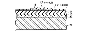 そして、図22の段階のアクティブマトリクス基板用中間生成物に示すように、第1支持基板21除去時に、第1支持基板21とアクティブ素子(15S,15C,15D,16,17,18,19,20)を構成する間に3層の積層膜構造(第1成膜層22、第2成膜層13、第3成膜層14)を有することが好ましいことが理解できる。このとき、第1成膜層22、第2成膜層13、第3成膜層14は、それぞれ異なる材質や組成比(図34参照。)であり、かつ第1成膜層22及び第2成膜層13は、第1支持基板21除去時に使用するエッチング液に対して、第1支持基板21よりもエッチング耐性があれば良く、無限大又はそれに近い耐性は必須とされない。
