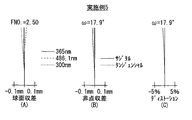 また、この結像レンズは、互いの分散の差が0.0055よりも小さな2種以上のレンズ材料により構成されている。このようなレンズ材料は、300nm以上800nm以下の波長を有する光に対して、10mmの厚みで50%以上の透過率を示す結晶であることが好ましく、例えば蛍石(CaF2)および石英(SiO2)である。本実施の形態の第1〜第3の構成例では、いずれも、例えば後群REのレンズL21,L23,L25,L26が蛍石(CaF2)により構成され、それ以外のレンズは全て石英(SiO2)により構成されている。 The imaging lens is composed of two or more kinds of lens materials whose difference in dispersion is smaller than 0.0055. Such a lens material is preferably a crystal having a transmittance of 50% or more at a thickness of 10 mm with respect to light having a wavelength of 300 nm or more and 800 nm or less, for example, fluorite (CaF 2 ) and quartz (SiO 2 ). 2 ). In the first to third configuration examples of the present embodiment, for example, the lenses L21, L23, L25, and L26 of the rear group RE are made of fluorite (CaF 2 ), and all other lenses are made of quartz ( SiO 2 ).
