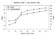 図5は、ポリアデニン分子の双極子モーメントと配向が、電界強度(電圧)1.6〜2.1V/nmのときに急激に変化することが示されている。一方、図6はポリチアミン分子、図7はポリシトシン分子、図8はポリグアニン分子のついての双極子モーメントとトランスフォーメーションの変化をそれぞれ示している。 FIG. 5 shows that the dipole moment and orientation of the polyadenine molecule change rapidly when the electric field strength (voltage) is 1.6 to 2.1 V / nm. On the other hand, FIG. 6 shows polythiamine molecules, FIG. 7 shows polycytosine molecules, and FIG. 8 shows changes in dipole moment and transformation of polyguanine molecules.