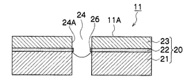 なお、ノズル24の内面において、支持層21の面の表面エネルギーをEs2、帯状の撥液膜26の面の表面エネルギーをEh、活性層23の面の表面エネルギーをEs1、とするときに、Es2≧Es1>Ehの条件を満たすことが望ましい。この条件を満たすことにより、ノズル24内のインクのメニスカスの位置をBox層22の部分に付着している帯状の撥液膜26の位置とすることができる。そのため、ノズル24内におけるインクのメニスカスの保持位置を精度よく制御でき、インク液滴の吐出性能の向上を図ることができる。