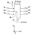 となる。よって、(1)式から、nが既知であれば、凹部のz方向の大きさ(段差)dが求まる。また、図5から、検査対象部材をx軸方向に移動させ、t1に現れる信号が消えるx軸方向の位置から凹部のx方向の幅2aを求めることができる。