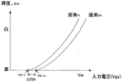 FIG. 2 is an example of the relationship (VI characteristics) between the input voltage (Vgs), the luminance of the