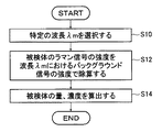 また、特許文献1のラマン分光法による基質の定量分析方法に記載されているように、測定物質の濃度とラマン散乱光の強度との間には、相関関係があるため、ラマン散乱光の強度から被検体の濃度や量を検出することもできる。