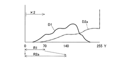 なお、基準階調値を変換する少なくとも一部の数値範囲は、基準階調値が取りうる範囲のうち、最も暗い色に対応する基準階調値から、取りうる範囲の幅の25%までの範囲を含むことが好ましい。 It should be noted that at least a part of the numerical range for converting the reference gradation value is a range from the reference gradation value corresponding to the darkest color to 25% of the range of the possible range among the possible range of the reference gradation value. It is preferable to include a range.