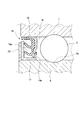 取付け状態におけるセンサ保持体25の上端部には、センサ装置21を構成するブラケット24を取り付けるためのセンサ取付孔31が設けられている。このセンサ取付孔31は、密封部材被覆部42における外周縁部からラジアル方向の途中の部分にまで設けられており、その下部には、周方向に対向してせり出す一対のレール部31aが設けられている。センサ23(図6参照)は、そのセンサ本体部26の側面部に設けられた一対のレール溝部32が、一対のレール部31aに差し込まれることにより、アキシャル方向及び周方向に移動することが規制される。そして、密封部材被覆部42におけるセンサ取付孔31の下方には、周方向に所定の間隔をおいて一対のねじ孔部48が設けられている。一対のねじ孔部48同士の間隔は、ブラケット24における一対のステー部36の孔部36a同士の間隔と同じである。ブラケット24が、センサ保持体25のセンサ取付孔31の部分に配置される。ブラケット24における一対のステー部36に設けられた孔部36aにボルト49(図2参照)が挿通され、対応するねじ孔部48に螺合される。これにより、ブラケット24がセンサ保持体25に固定される。なお、ブラケット24とセンサ保持体25との固定は、溶接などによってもすることができる。