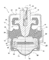 ところで、上述のエンジンマウントでは、路面の凹凸等により大きな振動荷重(バウンド荷重)が入力され、主液室内の液圧が急激に上昇した後に、逆方向の荷重(リバウンド荷重)が入力されると、主液室の液圧が負圧になることがある。主液室内の液圧が負圧になると、主液室内の流体中に多数の気泡が生成されるキャビテーションが発生する。キャビテーションは、その後の液圧変化(圧力上昇)に伴って気泡が消滅する時に異音を発生し、その異音が車室内に伝達されることから静粛性の悪化を招くことになる。また液圧上昇の開始後に気泡が完全に消滅するまでに一定の時間を要することから、入力振動に対する主液室の液圧変化量が小さくなり、エンジンマウントの振動吸収性能を低下させる原因ともなる。 By the way, in the above-described engine mount, when a large vibration load (bound load) is input due to road surface unevenness, etc., and the reverse pressure (rebound load) is input after the fluid pressure in the main fluid chamber suddenly increases. The liquid pressure in the main liquid chamber may become negative. When the liquid pressure in the main liquid chamber becomes negative, cavitation that generates a large number of bubbles in the fluid in the main liquid chamber occurs. Cavitation generates an abnormal noise when bubbles disappear with a subsequent hydraulic pressure change (pressure increase), and the abnormal noise is transmitted to the passenger compartment, resulting in a decrease in quietness. In addition, since a certain amount of time is required for the bubbles to disappear completely after the start of the hydraulic pressure rise, the amount of change in the hydraulic pressure in the main fluid chamber with respect to the input vibration is reduced, which may cause a decrease in the vibration absorption performance of the engine mount. .