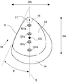 次に、取付部131a乃至131dの位置について図1及び図3を参照して説明する。図3は重心角θの説明図であり、ゴルフクラブヘッドAを用いたゴルフクラブのシャフトを、その軸線回りに回転可能にして水平に支持した状態において、ゴルフクラブヘッドAをソール部13側から見た図である。図3において、矢印Dhは水平方向を、矢印Dvは鉛直方向を示す。
