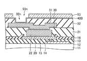 その後、たとえばスパッタリング法や真空蒸着法により、再配線層31及び上層絶縁膜32の表面に導電性材料を堆積して、UBM膜40Bを形成する(図16)。UBM膜40Bは、たとえば、チタン(Ti)、クロム(Cr)、タングステン(W)、金(Au)及び銅(Cu)などの金属材料の中から選択された1種または2種以上の金属膜あるいは合金膜を含むものである。また、UBM膜40Bは、単層膜、積層膜のいずれでもよい。さらに、開口部32nに連通する開口部53nを有するレジスト膜(第3のレジストパターン)53を形成する(図17)。続けて、これら開口部32n,53nにおいて露出するUBM膜40Bを下地(シード層)として、たとえば電解メッキ法によりバリアメタル41を形成し、このバリアメタル41上に金属端子材料42Bを付着させる(図18)。ここで、金属端子材料42Bは、たとえば、半田ボールバンプで構成すればよい。
