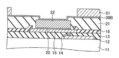 さらに、図10の工程では導電性ポスト22上にUBM膜30Bが成膜されるが、導電性ポスト22の高さを調整することで導電性ポスト22と層間絶縁膜21との段差Hbを小さくすることができる。よって、UBM膜30Bを下地として再配線層31を形成するとき(図12)、UBM膜30Bは、メッキ液に対する阻止膜として有効に機能し、導電性ポスト22へのエッチングダメージを抑制することができる。