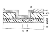 次に、スパッタリング法により、下部電極15及び層間絶縁膜25の表面に導電性材料を堆積してUBM膜45Bを形成する(図22)。その後、開口部60nを有するレジスト膜60を形成し(図23)、この開口部60nにおいて露出するUBM膜45Bを下地(シード層)として電解メッキ法により、再配線層35を形成する(図24)。その後、灰化処理によりレジスト膜50を除去し、さらに、導電性ポスト22をエッチング阻止膜として、エッチングによりUBM膜20Bの露出部分を除去する(図25)。その後は、図26に示されるように、再配線層35上に、層間絶縁膜26、UBM膜46、バリアメタル47及び端子金属48が形成される。