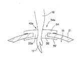接近器具32の別の実施形態が、図6に示されており、この場合、上述の実施形態と類似した構造の要素には同一番号の次にaを付けて示されている。この実施形態では、位置維持及び密封の機能は、アクセス器具それ自体についての変形形態で達成される。パッド35はこの場合、図4に示すように切開部32内に設けられる。しかしながら、外部フランジ54及び内部フランジ56が、パッド35と一体に形成されている。