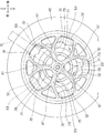 ハブ部52に、貫通穴43が設けられ、この貫通穴43に、車軸に支持されるベアリング(図2、符号47L、47R)が備えられ、貫通穴の内壁86に、ベアリング47L、47Rが係止されるベアリング突当て段部87が貫通穴の周方向に離れて複数個設けられている。