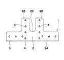 第2の手段において、前記導通片2は、前記当接片3に隣接し前記支持面Q1の長手方向に沿って載置する基端部2Aと、該基端部2Aから前記支持面Q1の前記連結ボルトR方向に向けて延長された差込部2Bと、該差込部2Bが前記連結ボルトRの側面方向にスライドするように差込部2Bに設けられた切欠状のスライド凹部2Cとを備えたものである。