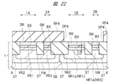また、図4は、図3と同じ領域の断面図が示されており、図4の左側の断面図は、図1のB−B線の断面図にほぼ対応し、図4の右側の断面図は、図1のC−C線の断面図にほぼ対応している。但し、図3では、半導体層SMがどの領域であるのかが分かりやすいように、半導体層SM全体にドットのハッチングを付して示してあり、n−型半導体領域EX1、n+型半導体領域HR1、p−型半導体領域EX2およびp+型半導体領域HR2の形成領域についての図示はしていない。また、図4では、n−型半導体領域EX1とn+型半導体領域HR1とp−型半導体領域EX2とp+型半導体領域HR2とがそれぞれどの領域であるかが分かりやすいように、n−型半導体領域EX1とn+型半導体領域HR1とp−型半導体領域EX2とp+型半導体領域HR2とにそれぞれ斜線のハッチングを付して示してある。従って、図3と図4とを合わせて見れば、半導体層SMの構成と、半導体層SMにおけるn−型半導体領域EX1とn+型半導体領域HR1とp−型半導体領域EX2とp+型半導体領域HR2との形成領域とを、理解しやすい。 4 is a cross-sectional view of the same region as FIG. 3, and the cross-sectional view on the left side of FIG. 4 substantially corresponds to the cross-sectional view taken along the line BB of FIG. The figure substantially corresponds to the cross-sectional view taken along the line CC in FIG. However, in FIG. 3, for easy understanding of which region the semiconductor layer SM is, the entire semiconductor layer SM is shown by hatching dots, and the n − type semiconductor region EX1 and the n + type semiconductor region HR1 are shown. The formation regions of the p − type semiconductor region EX2 and the p + type semiconductor region HR2 are not shown. Further, in FIG. 4, n - -type semiconductor region EX1 and the n + -type semiconductor regions HR1 and p - as the type semiconductor region EX2 and the p + -type semiconductor region HR2 is easy to understand whether any respective regions, n - -type The semiconductor region EX1, the n + type semiconductor region HR1, the p − type semiconductor region EX2, and the p + type semiconductor region HR2 are indicated by hatching. 3 and 4 together, the configuration of the semiconductor layer SM, the n − type semiconductor region EX1, the n + type semiconductor region HR1, the p − type semiconductor region EX2, and the p + type semiconductor in the semiconductor layer SM. It is easy to understand the formation region with the region HR2.