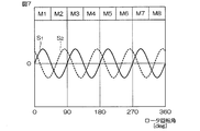 請求項4記載の発明は、前記請求項1〜3のいずれか一項に記載の位相差検出装置(61,71,72,77A)と、前記2つの磁気センサ(71,72)における2つの異なるタイミングでサンプリングされた4つの出力信号と、前記位相差検出装置によって検出された位相差Cとを用いて、前記回転体(8)の回転角を演算する回転角演算手段(77A)とを含む、回転角検出装置である。 According to a fourth aspect of the present invention, there are provided two phase difference detection devices (61, 71, 72, 77A) according to any one of the first to third aspects, and two of the two magnetic sensors (71, 72). Rotation angle calculation means (77A) for calculating the rotation angle of the rotating body (8) using four output signals sampled at different timings and the phase difference C detected by the phase difference detection device. A rotation angle detector.