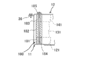 電池ブロック40は、図4および図5に示すように、保持ケース111内に複数の電池セル101を保持した構成を有しており、本実施の形態では、上下2層に電池セル101が配列されている。保持ケース111は、図4に示すように、長尺の六面体形状を有しており、上下方向に離間して対向し略一定幅で長手方向に延在する上面部112と下面部113、短手方向に離間して対向し上面部112と下面部113の各長辺部間に亘る一対の縦壁面部114、114、長手方向に離反して対向し上面部112、下面部113、一対の縦壁面部114、114の各短辺部間に亘る一対の端面部115、115を有する。