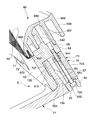 前記スライド案内機構43は、前記インナーシェル421の複数個所に形成され前後方向に延びる案内スリット431と、これら各案内スリット431にそれぞれスライド自在に貫装され上端に前記インナーシェル421の上面に摺接する抜止頭部433を有した複数のスライダ432と、これら各スライダ432の下端部434を固定すべく前記アウターシェル41に設けられた複数のスライダ取付部435とを備えたものである。前記各スライダ432は、対応する前記案内スリット431に沿ってスライドし得る角柱状をなすものであり、下端が図示しないビスにより前記アウターシェル41に取り付けられている。