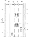 図2、図3および図4のそれぞれには、道路200を走行する自車両100と、その周辺を走行する3台の他車両101,102,103とが示されている。ここでは、道路200は、外側から第1車線201、第2車線202、第3車線203が設けられた片側3車線の道路であるものとする。道路200には、第1車線201の外側に路側帯(路肩)204が設けられている。また、路側帯204の外側にはガードレール205(または側壁)が存在し、第3車線203と対向車線(不図示)との間には中央分離帯206が存在する。