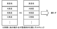 第1判定部1041は、ステップS9において特定した組合せに含まれる項目名に対応するデータ(すなわち、項目名と同じ列にあるデータ。項目値とも呼ばれる)が、データについての登録条件を満たすか判定する(ステップS13)。