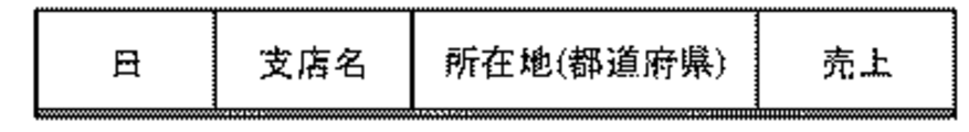 例えば図6に示すように、「sum_month」というプログラムに対応するテーブル処理部102によって、入力テーブル61から出力テーブル62が生成されたとする。入力テーブル61は項目名として「日」および「売上」を含み、出力テーブル62は項目名として「月」および「売上月合計」を含む。