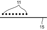 工程1では、複数の外側シート15が連続する外側シート15の連続体がMD方向Aに搬送されるとともに(図17A参照)、外側シート15の連続体上に胴回り弾性部材11がMD方向Aに沿って直線状に配置される(図17B参照)。胴回り弾性部材11は、外側シート15の上端縁に対して間隔を空けた下側において、互いに胴回り直交方向に間隔を空けて配置される。