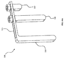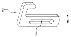 [81]図15A〜図15Cは、図14のシールド取付具の実施形態の変形例を示している。シールド取付具150aは、図14に示すシールド取付具150と同じ特徴の多くを有する。シールド取付具150aは閉じたスロット126aを有するのに対して、シールド取付具150(図14)は開放されたスロット126を有する。図15B及び図15Cは、使用時のシールド取付具150aを示す。閉じたスロット126aは、シールドパネル100のガイド112に取り付けられる。図示実施形態では、シールド取付具150aは、スロット126aがガイド112に沿ってスライドするようシールドパネル100に摺動可能に取り付けられる。図15D及び図15Eは、図15A〜図15Cのシールド取付具の実施形態に対応するシールドパネル100の実施形態を示している。幾つかの実施形態では、シールド取付具150aはシールドパネル100に固定される。ガイド112は、シールド取付具150aを整列させたままにし、シールド取付具150aがシールドパネル100から分離することを防止する。図15Bにおいて、シールド取付具150aは、シールドパネル100及び容器400と完全に係合している。図15Cにおいて、シールド取付具150aは、シールドパネル100及び容器400から突出している。