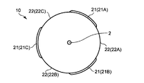 第1のバルーンカテーテルにおいて、第1領域と第2領域が、バルーンの周方向に交互に配置されていることが好ましい。 In the first balloon catheter, it is preferable that the first region and the second region are alternately arranged in the circumferential direction of the balloon.