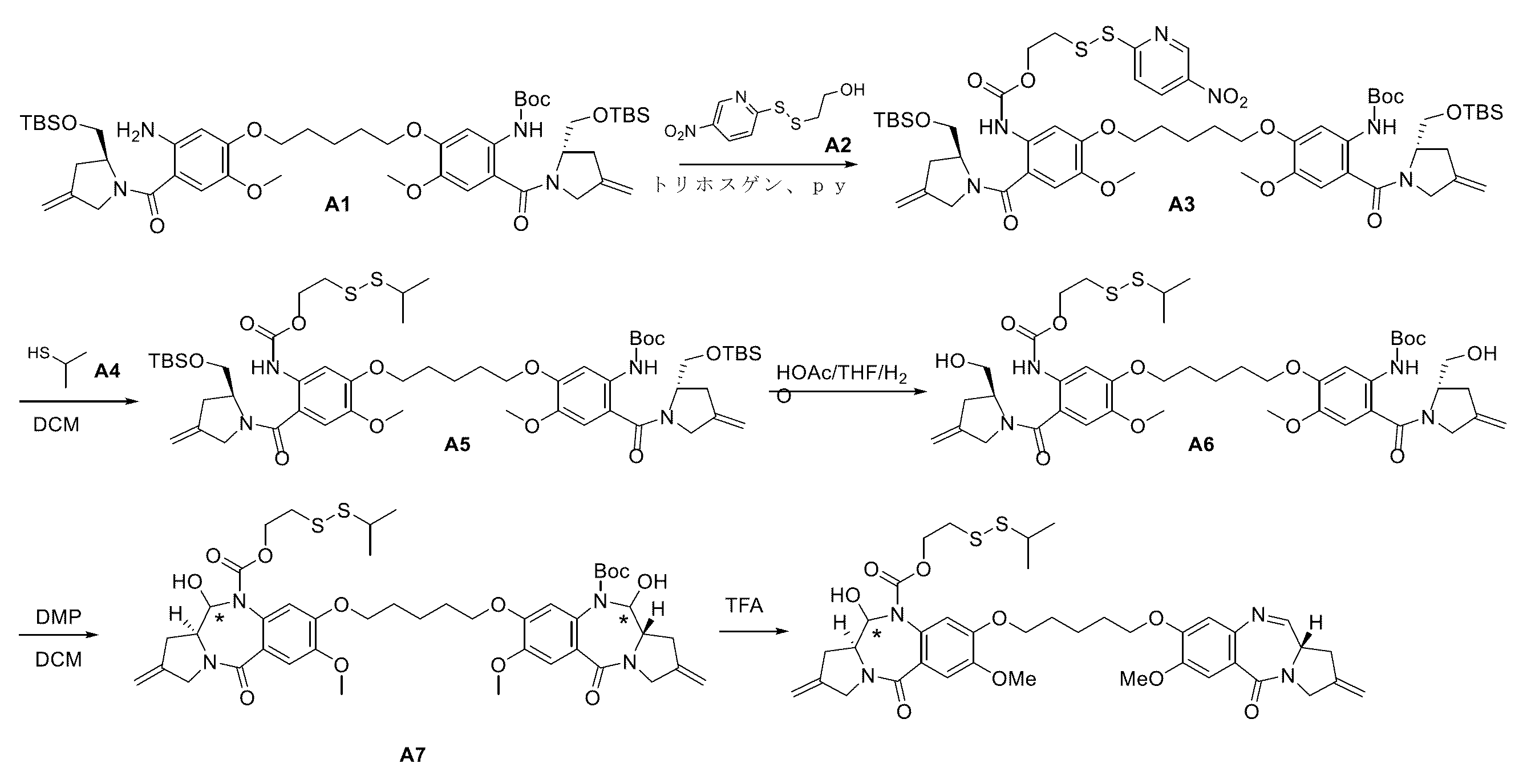 ピロロベンゾジアゼピン(PBD)及びその二量体は、DNAと相互作用することが知られており、有効ながん化学療法剤である。問題としては、心臓毒性及び急性組織壊死などのいくつかのPBDと関連する副作用は、限定された使用、投薬量、及び有効性を有する。 Pyrrolobenzodiazepines (PBDs) and their dimers are known to interact with DNA and are effective cancer chemotherapeutic agents. In question, some PBD-related side effects such as cardiotoxicity and acute tissue necrosis have limited use, dosage, and efficacy.