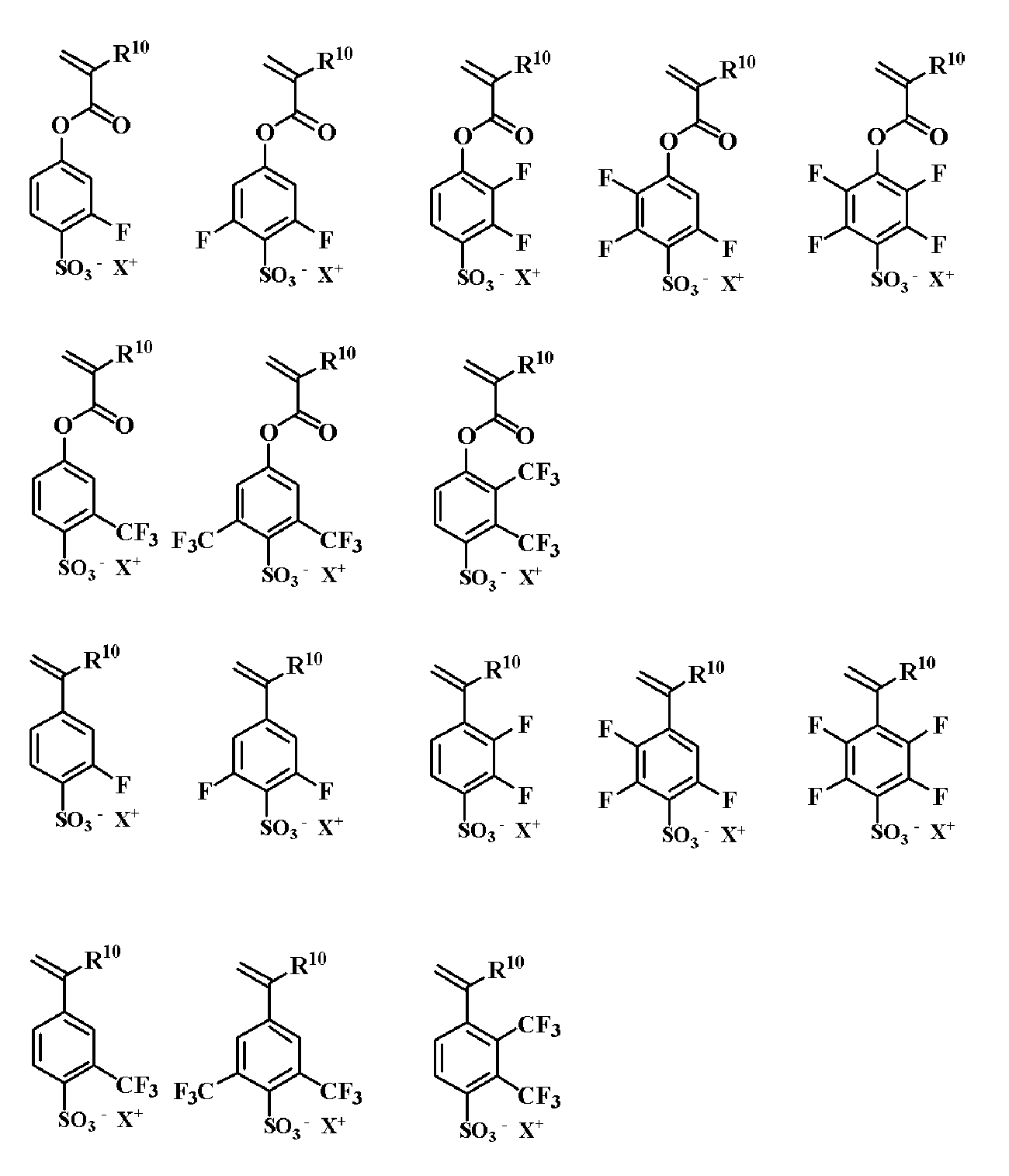 燃料電池や導電性高分子のドーパントポリマーとしてスルホ基含有ポリマーが用いられている。燃料電池用としては登録商標ナフィオンに代表されるビニルパーフルオロアルキルエーテルスルホン酸、導電性高分子用のドーパントポリマーとしては、ビニルスルホン酸やスチレンスルホン酸の重合体が広く用いられている(特許文献1)。ドーパントポリマーとして、プロトンが陽イオンで置換されたフッ素化酸ポリマーが提案されており、この中でビスフルオロアルキルスルホニルイミドのリチウム塩を有するスチレン誘導体のドーパントが示されている(特許文献2)。 Polymers containing sulfo groups are used as dopant polymers for fuel cells and conductive polymers. For fuel cells, vinyl perfluoroalkyl ether sulfonic acid represented by the registered trademark Nafion is widely used, and as dopant polymers for conductive polymers, vinyl sulfonic acid and styrene sulfonic acid polymers are widely used (Patent Documents 1). As a dopant polymer, a fluorinated acid polymer in which protons are substituted with cations has been proposed, among which a styrene derivative dopant having a lithium salt of bisfluoroalkylsulfonylimide is shown (Patent Document 2).