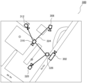 図2は本実施形態に係る固定カメラ及び仮設カメラのカバー範囲の例を示す。固定カメラ202に加えて、4台の仮設カメラ208、212、216及び220が固定カメラのカバー範囲206の外に配置される。結果として、4台の仮設カメラ208、212、216及び220により、監視システムがFOV210、214、218及び222をカバーできるようになる。