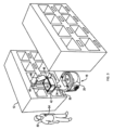 再び図2Bを参照すると、ベース20は、品物を担持するために通い箱(tote)又はビンが格納され得る、上部表面32を含む。複数の交換可能なアーマチュア40のうちのいずれか1つを係合させる、連結器34も示されており、アーマチュア40のうちの1つが図3に示されている。図3中の特定のアーマチュア40は、品物を受け取る通い箱44を担持するための通い箱保持具42(この場合、棚)と、タブレット48を支持するためのタブレット保持具46(又はラップトップ/他のユーザ入力デバイス)とを採用する。いくつかの実施例では、アーマチュア40は、品物を担持するための1つ又は複数の通い箱を支持する。他の実施例では、ベース20は、受け取られた品物を担持するための1つ又は複数の通い箱を支持する。本明細書で使用される「通い箱」という用語は、限定はしないが、貨物保持具、ビン、かご、棚、品物をつるすことができるロッド、台車、木枠、ラック、スタンド、架台、容器、箱、缶、入れ物、及び置場を含む。