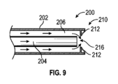 当該システムのいくつかの構成は、外壁部と内壁部とを接続する周方向又は非周方向の断続的な支持構造、例えば、2つ以上、4~8つ、若しくは6~10個以上、又はそれらの間の任意の数、又はこれより多い周方向及び/又は非周方向の断続的な支持構造をさらに備える。これらの支持構造は、当該システムの内側の管、チャンバ又は壁と、外側の管、チャンバ又は壁との間の接続を提供するために使用することができる。 Some configurations of the system include two or more, four to eight, or six to ten or more circumferential or non-circumferential intermittent support structures connecting the outer and inner walls; It further includes any number or more circumferential and/or non-circumferential intermittent support structures therebetween. These support structures can be used to provide connections between the inner tubes, chambers or walls of the system and the outer tubes, chambers or walls.