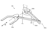 搬送アーム32aは、図2に示すように、その先端に搬送ピック32cが設けられている。また、基台32bには、搬送ピック32cを移動させるための駆動力を発生する駆動機構32dが設けられている。駆動機構32dはモータ等のアクチュエータを有する。駆動機構32dが発生する駆動力により、搬送アーム32aを基台32bの中心軸Aを回転させ、当該中心軸Aを中心とした周方向(図のθ方向)に搬送ピック32cを移動させることができる。また、駆動機構32dが発生する駆動力により、搬送アーム32aを伸縮させ、基台32bの中心軸Aを中心とした径方向(図のR方向)に搬送ピック32cを移動させることができる。