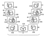 쌍안 시차 시스템으로는, 안경의 존재/부재를 포함하는 다양한 시스템이 제안되어 왔으며, 예를 들어, 좌안/우안용 비디오 정보를 포함하는 쌍안 시스템(소위 입체 방법)뿐만 아니라 비디오 촬영시 복수의 관찰 위치가 배치되어 정보 양을 늘리고 관찰가능한 범위를 늘리는 다안식 시스템이 있다. 그 쌍안 시스템에서는, 2개의 촬영 위치가 좌안 및 우안용으로 배치되어 좌안 및 우안용 화상을 얻게 되어 이 화상이 좌안 및 우안으로 각각 볼 수 있게 된다. 다안식 시스템에서는, 비디오 촬영 위치가 쌍안 시스템의 경우보다 더 많게 된다.As a binocular parallax system, various systems including the presence / absence of glasses have been proposed, for example, a plurality of observation positions in video shooting as well as a binocular system (so-called stereoscopic method) including video information for left and right eyes. There is a multi-spatial system that is deployed to increase the amount of information and increase the observable range. In the binocular system, two photographing positions are arranged for the left eye and the right eye to obtain images for the left eye and the right eye so that the image can be viewed with the left eye and the right eye, respectively. In a multieye system, the video shooting position is more than in a binocular system.