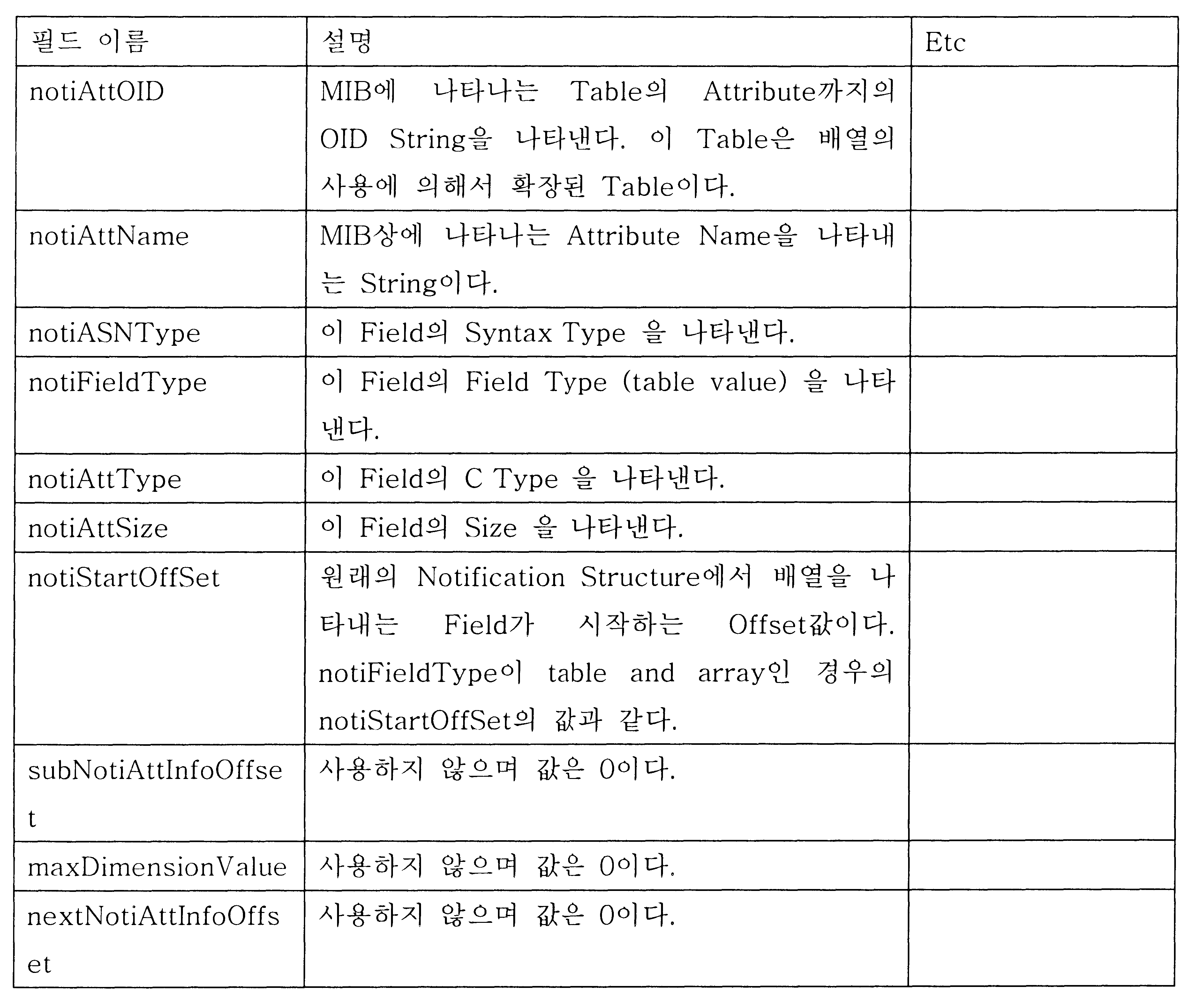 SNMP를 이용하여 관리되어야 할 특정한 정보(information), 자원(resource) 등을 객체(Object)라 하며, 이런 객체들을 모아놓은 집합체를 상기 MIB라하며, 상기 MIB 형식은 SNMP의 일부로서 정의되어 있고, 각 객체들은 ASN.1(Abstract Syntax Notation One)을 사용해서 정의되어진다.Specific information to be managed using SNMP, resources, and the like are called objects, and a collection of these objects is called the MIB, and the MIB format is defined as part of SNMP. Each object is defined using Abstract Syntax Notation One (ASN.1).