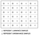 일반적으로 영상을 부호화할 때에는 컬러 변환을 수행한 후에 부호화를 한다. 즉 컬러 영상을 부호화할 때에 휘도 성분과 색상 성분을 나누어서 부호화를 수행한다. 이 때 휘도 성분에는 많은 정보가 집중되고 색상 성분은 비교적 적은 정보량을 갖게 된다. 그러므로 압축 효율을 높이기 위해서 색상 성분의 샘플의 수를 줄여서 부호화를 한다. 이 때 샘플링 포맷으로 4:2:2와 4:2:0 포맷이 일반적으로 사용된다. 즉 종래의 부호화 방법에서는 원본 영상을 휘도 성분과 색상 성분을 나눈 후, 상기 색상성분을 샘플링 한 후에 부호화를 수행한다.In general, when encoding an image, encoding is performed after color conversion. That is, when the color image is encoded, the encoding is performed by dividing the luminance component and the color component. At this time, much information is concentrated in the luminance component, and the color component has a relatively small amount of information. Therefore, to improve the compression efficiency, the coding is performed by reducing the number of samples of color components. At this time, 4: 2: 2 and 4: 2: 0 formats are generally used as sampling formats. That is, in the conventional encoding method, the original image is divided into luminance and color components, and the encoding is performed after sampling the color components.