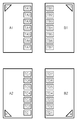 도 3에 도시된 반도체 메모리 모듈은 2 열[제 1 열의 제 1 반도체 메모리 소자들 (A1, A2) 및 제 2 열의 제 2 반도체 메모리 소자들(B1, B2)]의 반도체 메모리 소자들을 구비하고 있다. 본 발명에 따른 반도체 메모리 모듈은 2 열 이상의 반도체 메모리 소자들을 구비하며, 이와 같이 2 열의 이상의 반도체 메모리 소자들을 반도체 메모리 모듈에 구비시킴으로써 고집적(high density)의 반도체 메모리 모듈을 구현할 수 있다.The semiconductor memory module shown in FIG. 3 includes semiconductor memory elements in two rows (first semiconductor memory elements A1 and A2 in the first row and second semiconductor memory elements B1 and B2 in the second row). . The semiconductor memory module according to the present invention includes two or more rows of semiconductor memory devices, and thus, by providing two or more rows of semiconductor memory devices in the semiconductor memory module, a high density semiconductor memory module can be realized.