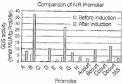 NiR 프로모터는 몇몇 식물 종에서 특징이 밝혀졌다(Back et al., 1991, Plant Molecular Biology 17:9-18; Sander et al., 1995, Plant Molecular Biology 27:165-177). 이러한 프로모터의 유도능은 형질전환 식물에서 마켜 유전자를 사용하여 밝혀졌고, 형질전환 식물은 질산염의 이용성이 전사의 완전한 활성에 필요한 것을 나타낸다.NiR promoters have been characterized in several plant species (Back et al., 1991, Plant Molecular Biology 17: 9-18; Sander et al., 1995, Plant Molecular Biology 27: 165-177). The inducibility of these promoters has been found using genes in transgenic plants, which show that the availability of nitrate is necessary for the full activity of transcription.