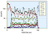도 24 및 도 25는 각각 도 22 및 도 23의 1-1'방향으로 물질 성분 분포를 나타낸 그래프들이다.24 and 25 are graphs showing material component distribution in the 1-1 ′ direction of FIGS. 22 and 23, respectively.