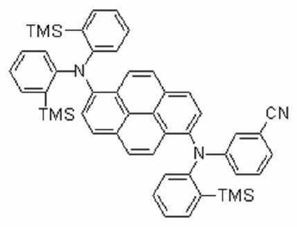 본 발명의 일 실시예에 의하면 상기 청색발광화합물은 하기 화학식 2로 표시되는 군에서 선택된 어느 하나일 수 있으며, TMS는 트리메틸실릴(Trimethylsillyl)을 의미한다.According to an embodiment of the present invention, the blue light emitting compound may be any one selected from the group represented by Formula 2, and TMS means trimethylsillyl.