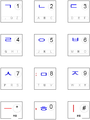 과거 알파벳을 구성하는 획소를 각 버튼에 배정하고, 각 획소(예. →, ↓, ↙, ↘, ⊃, O 등등)의 조합으로 알파벳을 입력하는 방법이 있었다. 또한 현재 한국에서 한국어의 모음만을 3개의 모음요소(ㅡ, ., ㅣ=> 즉, 획소)로 분리하여 각 모음요소의 조합으로 키패드에서 알파벳을 입력하는 사례가 있었다. In the past, there were methods of assigning alphabets to each button and inputting alphabets by a combination of each stroke (eg, →, ↓, ↙, ↘, ⊃, O, etc.). Also, in Korea, there are cases where Korean vowels are separated into three vowel elements (ㅡ,., ㅣ =>, ie, Korean), and the alphabet is input from the keypad as a combination of vowel elements.
